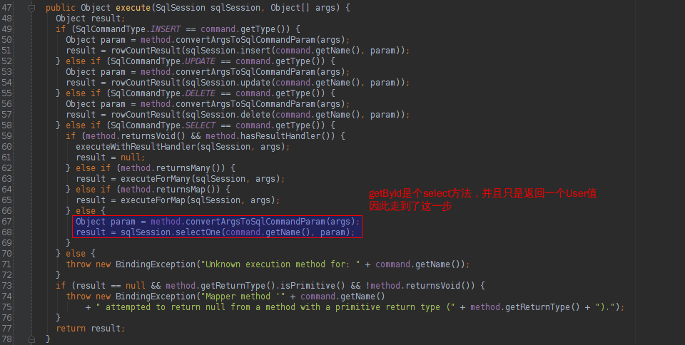 看到这里大家应该就很明白了,这个方法和我们之前单独使用Mybatis的方式是一样的,都是先获取一个Sqlsession对象,然后再从Sqlsession里获取Mapper对象(