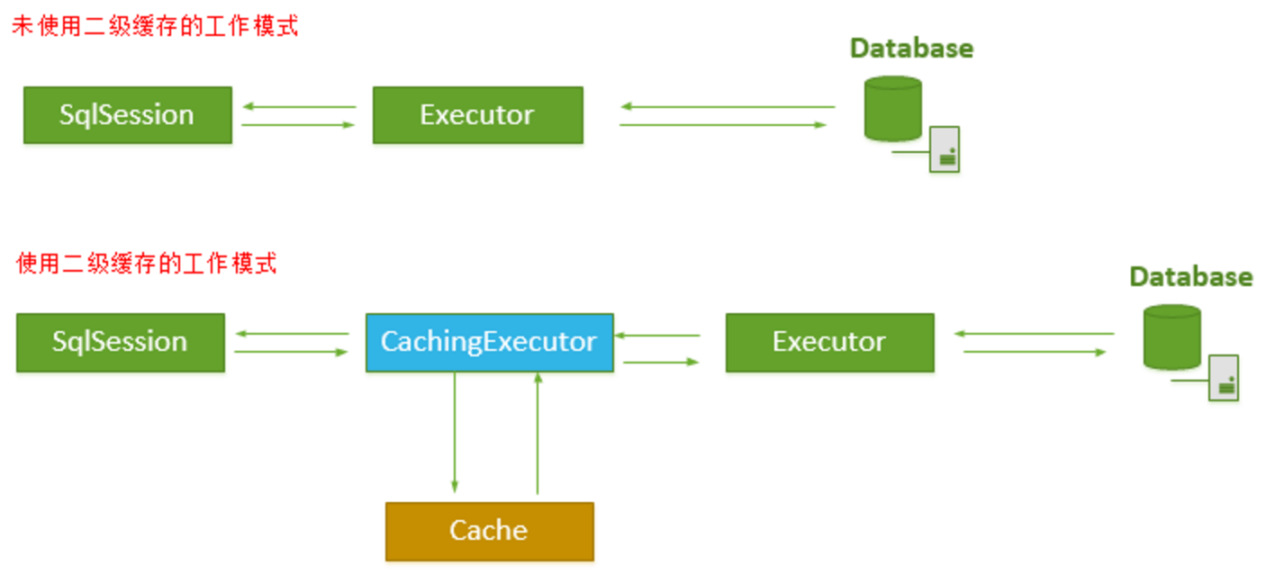MyBatis中一级缓存和二级缓存的组织如下图所示: