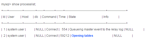 朋友的数据库,做了主从replication复制。在slave实例上,SQL thread的长时间处于Opening tables状态,复制进程异常。