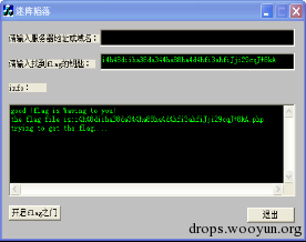 #!c if(m_sf.IsEmpty())return; info=check(m_sf.GetBuffer(m_sf.GetLength())); //数独游戏 char *temp=m_sf.GetBuffer(m_sf.GetLength()); memcpy(g_key1,temp,8); //取3DES密钥 memcpy(g_key2,temp+20,8); int slen1,slen; TCHAR * tc; //注释的这部分 是对加密KEY 进行加密 得到最终结果的过程 /* tri_des(addKey,g_key1,g_key2,0);//3DES 0加密 int slen1,len=9; int slen = (len / 3) * 4; slen += 10; tc = (TCHAR *)malloc(slen); slen = BASE64_Encode((BYTE *)addKey, len, tc); tc[slen]='/0'; //syslog->SetWindowText(tc); */ slen=m_sf.GetLength()-34; char * addKey; addKey= (char *)malloc(slen); memset(addKey,0,slen); memcpy(addKey,temp+34,(9/3)*4); slen1 = (slen / 4) * 3; slen1 += 10; BYTE * ct; ct = (BYTE *)malloc(slen1); int deLen=BASE64_Decode(addKey, slen, ct); //对输入进行BASE64解密 ct[deLen]='/0'; tri_des(ct,g_key1,g_key2,1);//3DES 1 解密 int i=0,j; while(temp[i]&&i<m_sf.GetLength()-12) //加密数独运算的结果 { temp[i]+=ct[i%8]; if (temp[i]=='>'||temp[i]=='?'||temp[i]==';')temp[i]+=ct[i%8]; i++; } temp[i]='/0'; info+="/r/n"; if (!strcmp(temp,"k8kBDlnjje6Fji856ldFDpf5f8kmoCfihm")) //比较是否相等 { UpdateData(TRUE); info+="the flag file is:"; info+=m_sf.GetBuffer(m_sf.GetLength()); info+=".php/r/n"; info+="trying to get the flag..../r/n"; httpdata.Replace("ip_addr",m_ip); httpdata.Replace("main",m_sf.GetBuffer(m_sf.GetLength())); CString rep=SentHttpData(httpdata); if (rep.Find("miao",0)>-1) { info+=rep; } else info+="so sorry!no flag !"; } 上面的算法其实就是一个加法运算,所以难度也不大。最主要的是如果没有能识别出3DES加密算法,那么就会被卡住,所以对算法特征的了解在破解过程中往往会有很大帮助,也许这里难住了一部分人。