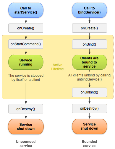 Service分为两种形式:以startService 启动 的Service和用bindService 绑定 的服务;由于这两个过程大体相似,这里以稍复杂的 bindService 为例分析Service组件的工作原理。