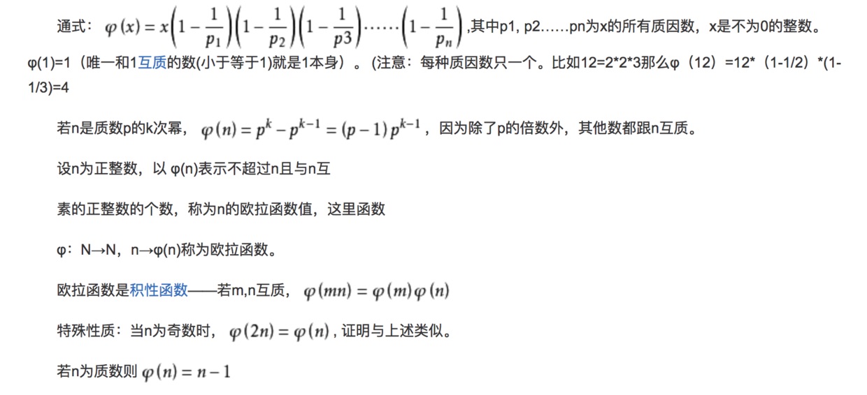 任意给定正整数n,请问在小于等于n的正整数之中,有多少个与n构成互质关系?(比如,在1到8之中,有多少个数与8构成互质关系?)计算这个值的方法就叫做欧拉函数,以φ(n)表示。在1到8之中,与8形成互质关系的是1、3、5、7,所以 φ(n) = 4。