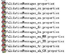 默认的错误消息文件是/org/hibernate/validator/ValidationMessages.properties,如下图所示: