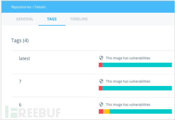 下面的截图展示了用户的5个私有仓库扫描结果。 Dokcer安全选项在平台的底部。