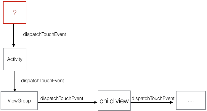05-09 09:35:39.775 8911-8911/com.yinhan.hunter.dksdk W/System.err: java.lang.Throwable: stack dump 05-09 09:35:39.775 8911-8911/com.yinhan.hunter.dksdk W/System.err: at java.lang.Thread.dumpStack(Thread.java:496) 05-09 09:35:39.775 8911-8911/com.yinhan.hunter.dksdk W/System.err: at com.demo.liuguangli.suspendbox.MainActivity.dispatchTouchEvent(MainActivity.java:65) 05-09 09:35:39.775 8911-8911/com.yinhan.hunter.dksdk W/System.err: at com.android.internal.policy.impl.PhoneWindow$DecorView.dispatchTouchEvent(PhoneWindow.java:1901) 05-09 09:35:39.775 8911-8911/com.yinhan.hunter.dksdk W/System.err: at android.view.View.dispatchPointerEvent(View.java:7426) 05-09 09:35:39.775 8911-8911/com.yinhan.hunter.dksdk W/System.err: at android.view.ViewRootImpl.deliverPointerEvent(ViewRootImpl.java:3220) 05-09 09:35:39.775 8911-8911/com.yinhan.hunter.dksdk W/System.err: at android.view.ViewRootImpl.deliverInputEvent(ViewRootImpl.java:3165) 05-09 09:35:39.775 8911-8911/com.yinhan.hunter.dksdk W/System.err: at android.view.ViewRootImpl.doProcessInputEvents(ViewRootImpl.java:4292) 05-09 09:35:39.775 8911-8911/com.yinhan.hunter.dksdk W/System.err: at android.view.ViewRootImpl.enqueueInputEvent(ViewRootImpl.java:4271) 05-09 09:35:39.775 8911-8911/com.yinhan.hunter.dksdk W/System.err: at android.view.ViewRootImpl$WindowInputEventReceiver.onInputEvent(ViewRootImpl.java:4363) 05-09 09:35:39.775 8911-8911/com.yinhan.hunter.dksdk W/System.err: at android.view.InputEventReceiver.dispatchInputEvent(InputEventReceiver.java:179) 05-09 09:35:39.775 8911-8911/com.yinhan.hunter.dksdk W/System.err: at android.os.MessageQueue.nativePollOnce(Native Method) 05-09 09:35:39.775 8911-8911/com.yinhan.hunter.dksdk W/System.err: at android.os.MessageQueue.next(MessageQueue.java:125) 05-09 09:35:39.775 8911-8911/com.yinhan.hunter.dksdk W/System.err: at android.os.Looper.loop(Looper.java:124) 05-09 09:35:39.775 8911-8911/com.yinhan.hunter.dksdk W/System.err: at android.app.ActivityThread.main(ActivityThread.java:5041) 05-09 09:35:39.775 8911-8911/com.yinhan.hunter.dksdk W/System.err: at java.lang.reflect.Method.invokeNative(Native Method) 05-09 09:35:39.775 8911-8911/com.yinhan.hunter.dksdk W/System.err: at java.lang.reflect.Method.invoke(Method.java:511) 05-09 09:35:39.775 8911-8911/com.yinhan.hunter.dksdk W/System.err: at com.android.internal.os.ZygoteInit$MethodAndArgsCaller.run(ZygoteInit.java:793) 05-09 09:35:39.775 8911-8911/com.yinhan.hunter.dksdk W/System.err: at com.android.internal.os.ZygoteInit.main(ZygoteInit.java:560) 05-09 09:35:39.775 8911-8911/com.yinhan.hunter.dksdk W/System.err: at de.robv.android.xposed.XposedBridge.main(XposedBridge.java:132) 05-09 09:35:39.775 8911-8911/com.yinhan.hunter.dksdk W/System.err: at dalvik.system.NativeStart.main(Native Method) 一条粗略的线索:ViewRootImpl-deliverInputEvent ->View.dispatchPointerEvent->PhoneWindow$DecorView.dispatchTouchEvent->MainActivity.dispatchTouchEvent,读者可以根据这个线索去跟踪源码。我们这里先不深入其中细节,先来看看DecorView 到 Activity.dispatchTouchEvent 是如何调用的?