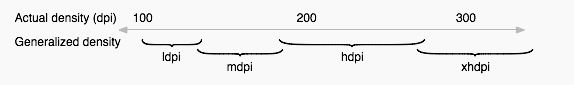 表示屏幕密度是指每英寸上的像素点数。Android将根据不同的dpi将Android设备分成多个显示级别。具体如下: