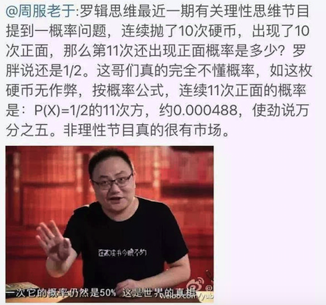 第十一次为正面的概率是多少?这个问题首先是一道语文题。我们得搞清楚,当我们问第十一次为正面的概率是多少,我们到底问了啥。回答的人,认为问题是条件概率或者是(和前面结果独立)。回答的人,认为问题是联合概率。