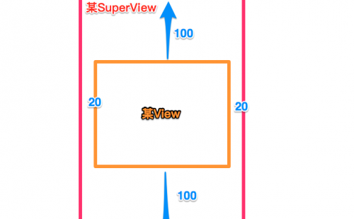 实现某SuperView里有一个子View。子View要距离父View顶部100,左右各20,底部100,子View的高度自适应。