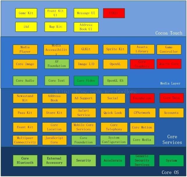 本文将使用iOS中的coreText框架来完成我们的图文混编之旅,除此之外,还实现文本超链接效果。在开始本篇的代码之前,我们先通过iOS框架结构图来了解CoreText所处的位置: