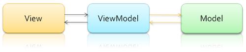 因此,一种可以很好地解决 Massive View Controller 问题的办法就是将 controller 中的展示逻辑抽取出来,放置到一个专门的地方,而这个地方就是 viewModel 。其实,我们只要在上图中的 M-VC 之间放入 VM ,就可以得到 MVVM 模式的结构图: