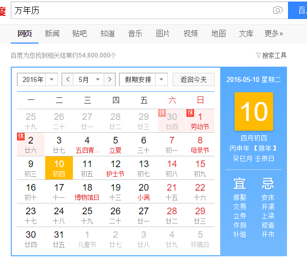 恩,百度的万年历