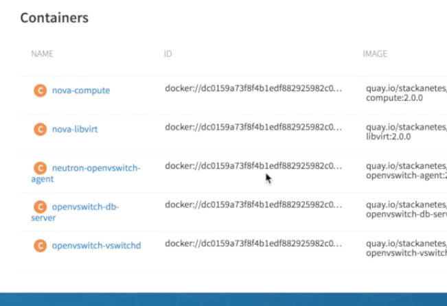 Kubernetes是用来部署和管理大量容器的软件,所以非常适合这项工作。Stackanetes是打包OpenStack到容器中的代码和部署它们的过程。当一个新版本的OpenStack服务需要被部署时,Stackanetes替换旧的容器为新的版本。