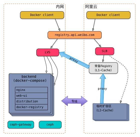 为此,我们利用镜像仓库内置的proxy机制,构建了一套可以弹性扩容的多级缓存架构(上图中右侧部分)