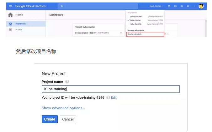 登录到谷歌云平台控制台,并创建一个新的项目: