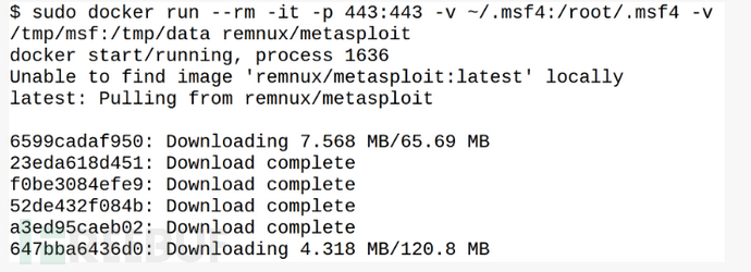 然后你可以直接使用下面的命令下载Metasploit Framework容器