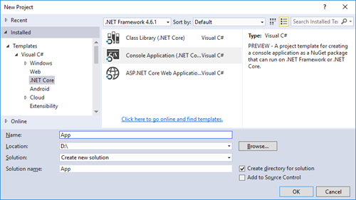 现在给大家重现这个问题,通过VS 2015创建一个.NET Core控制台程序。