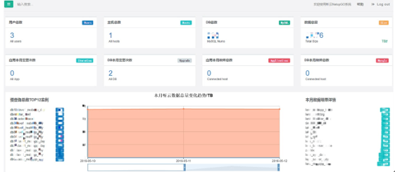 这里主要是一些数据概览,各种总量、截至到当前的本月数据量变化趋势。每个业务库本月的数据容量变化情况,还有前一天慢查询数量排名top12。仪表盘上提供快速跳转的链接,只需要点击相关的数字即可。比如点击DB总数,就会跳转到DB列表的页面。