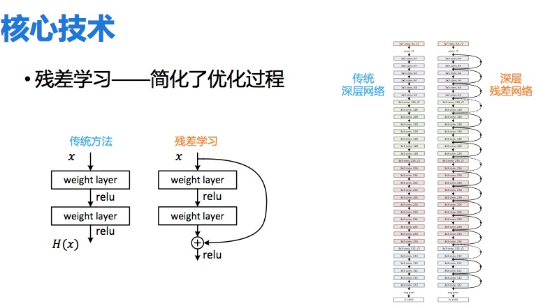 在ImageNet 2015的比赛中,微软亚洲研究院视觉计算组的研究员们凭借深层神经网络技术的最新突破,以绝对优势获得图像分类、图像定位以及图像检测全部三个主要项目的冠军。其中的独门秘诀就叫深层残差网络(Deep Residual Networks)。【参考文章: 刷新神经网络新深度:ImageNet计算机视觉挑战赛微软中国研究员夺冠 】