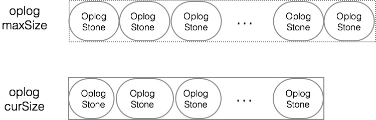 MongoDB oplog是一个 capped collection ,创建capped collection时, createCollection 可以设置size(最大字节数)和max(最大文档数)的参数,当这个集合的『总大小超过size』或者『总文档数超过max』时,在新插入文档时就会自动删除一些集合内最先插入的文档,相当于一片环形的存储空间。