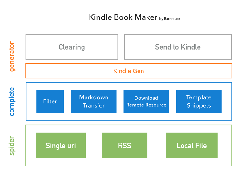 本项目旨在写一个 Kindle 电子书的构建工具,从互联网上抓取数据,合并整合都生成一本小巧的 .mobi 电子书。而使用这个工具,你只需要编辑下配置文件,或者直接运行命令行工具。