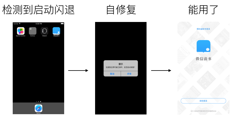 为了应对上述导致连续闪退的原因,微信读书的修复流程为: