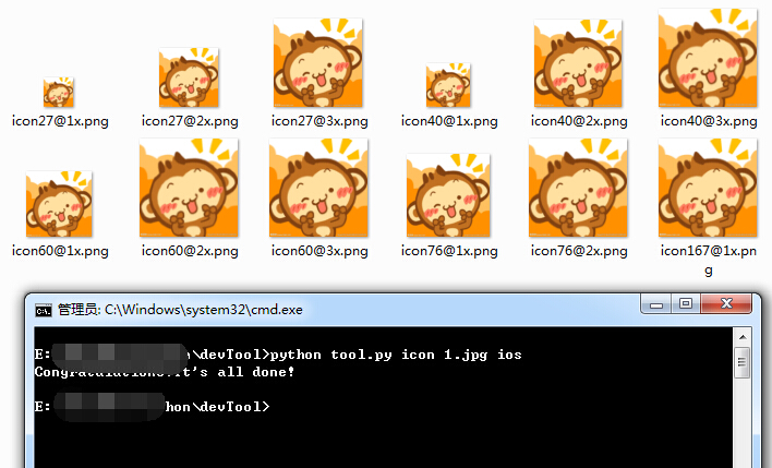 例如生成ios的图标:python tool.py icon icon.jpg ios