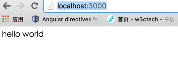 //app.js //引入 `express` 模块 var express = require('express'); //调用 express 实例并将这个变量赋予 app 变量。 var app = express(); // app 本身有很多方法,其中包括最常用的 get、post、put/patch、delete,在这里我们调用其中的 get 方法,为我们的 `/` 路径指定一个 handler 函数。 // 这个 handler 函数会接收 req 和 res 两个对象,他们分别是请求的 request 和 response。 // request 中包含了浏览器传来的各种信息,比如 query 啊,body 啊,headers 啊之类的,都可以通过 req 对象访问到。 // res 对象,我们一般不从里面取信息,而是通过它来定制我们向浏览器输出的信息,比如 header 信息,比如想要向浏览器输出的内容。这里我们调用了它的 #send 方法,向浏览器输出一个字符串。 app.get('/',function(req,res){ res.send('hello world'); }) // 定义好我们 app 的行为之后,让它监听本地的 3000 端口。这里的第二个函数是个回调函数,会在 listen 动作成功后执行,我们这里执行了一个命令行输出操作,告诉我们监听动作已完成。 app.listen(3000, function () { console.log('app is listening at port 3000'); }); 运行 node app.js 并且访问 http://localhost:3000/ 即可看到 hello world
