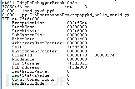 import pykd print pykd.dbgCommand("!teb")
