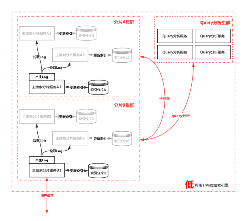 这个图最后出来的是一个 低 可用的分布式搜索引擎,今天我们要解决的问题是把这个 低 变成 高 ,今天这篇非常简单,没有任何高级技术,看完你就知道了。