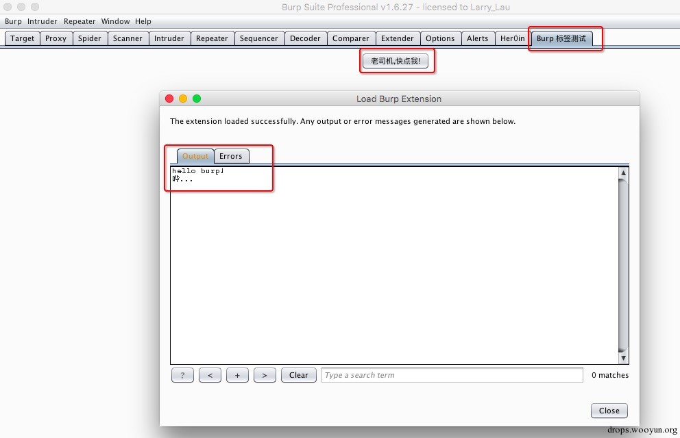 #!java /* * BurpSuite 插件开发指南之 Java 篇 * writend by Her0in */ package burp; import java.awt.Component; import java.awt.event.MouseAdapter; import java.awt.event.MouseEvent; import java.io.PrintWriter; import javax.swing.JButton; import javax.swing.JPanel; import javax.swing.SwingUtilities; public class BurpExtender implements IBurpExtender, ITab{ public PrintWriter stdout; public IExtensionHelpers hps; public IBurpExtenderCallbacks cbs; public JPanel jPanelMain; @Override public void registerExtenderCallbacks(IBurpExtenderCallbacks callbacks) { callbacks.setExtensionName("BurpExtender"); this.hps = callbacks.getHelpers(); this.cbs = callbacks; this.stdout = new PrintWriter(callbacks.getStdout(), true); this.stdout.println("hello burp!"); SwingUtilities.invokeLater(new Runnable() { @Override public void run() { jPanelMain = new JPanel(); JButton jButton = new JButton("老司机,快点我!"); jButton.addMouseListener(new MouseAdapter() { @Override public void mouseClicked(MouseEvent e){ stdout.println("哔..."); } }); // 将按钮添加到 主面板 jPanelMain 中. jPanelMain.add(jButton); // 设置自定义组件并添加标签 cbs.customizeUiComponent(jPanelMain); cbs.addSuiteTab(BurpExtender.this); } }); } // 实现 ITab 接口的 getTabCaption 方法 @Override public String getTabCaption() { return "Burp 标签测试"; } // 实现 ITab 接口的 getUiComponent 方法 @Override public Component getUiComponent() { return jPanelMain; } } 从上述代码中,读者也能够看到,Java 的 Swing 图形编程有点蛋疼,需要一层层的编写。首先需要添加一个 JPanel 上去,然后在这个 JPanel 中再添加图形组件,如果还有上层的图形组件,则需要再添加一个 Panel 类型的控件。