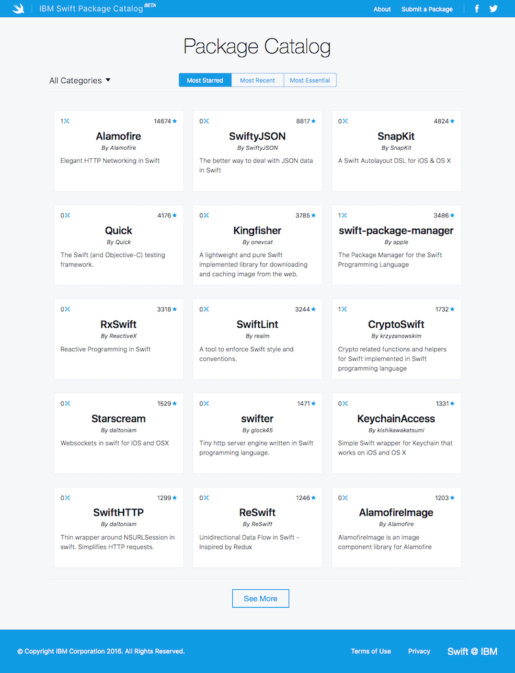 现在,我们能够使用 IBM Swift Package Catalog 来: