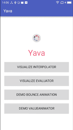 举个例子,以弹跳动画效果为例,可以直接使用 EasingFunction.BOUNCE_OUT 作为 Interpolator 或者 TypeEvaluator 来使用: