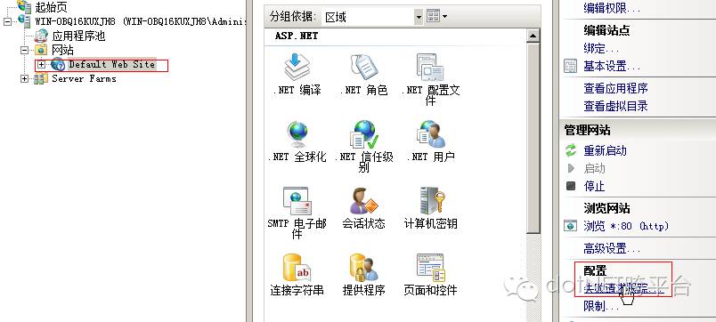 2. 在 IIS 的站点中选择一个要对失败请求进行跟踪的站点,例如要对 Default Web Site 跟踪。