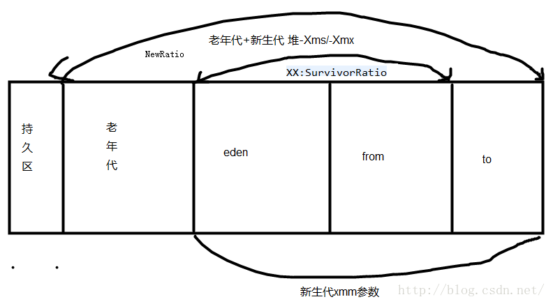 -XX:SurvivorRatio=eden/from =eden/to