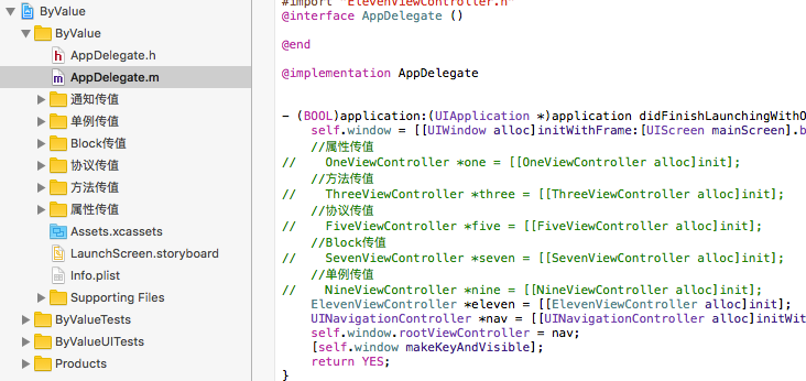 通过属性传值、方法传值、代理传值、Block传值、单例传值、通知传值6种方式进行不同视图之间的传值。不同方式只需要在AppDelegate中更改下UINavigationController的根控制器即可。使用很简单的实例让你很快理解不同的传值方式。