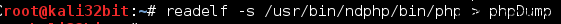 executor_globals zend_eval_string JMP_BUF 比较幸运的是, 上面所列举的要求, 有些还是比较好找的, 因为它们就在 binary 中. 我们直接 dump PHP binay 的 strtab.