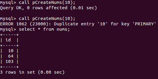 - declare exit handler for sqlexception begin rollback;select -1;end;