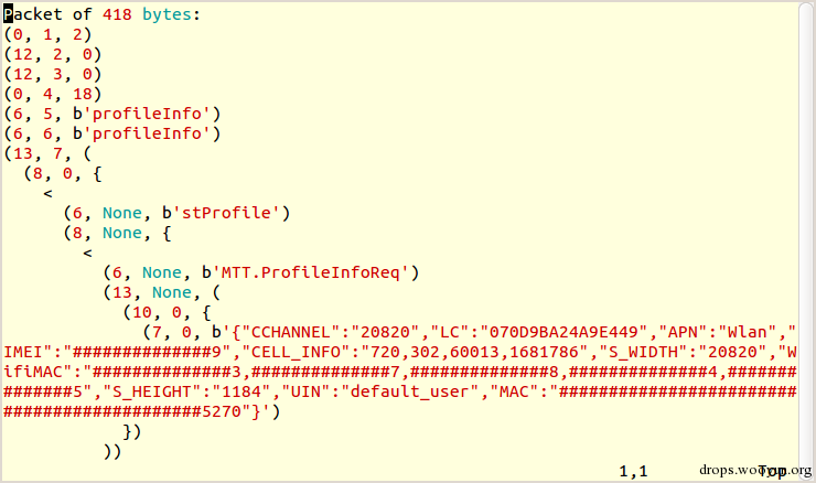 我们一直监控着浏览器发送的流量,并且使用这个秘钥解密了所有的WUP请求。多数WUP请求中传输的是一些很容易解密的个人信息。在图1中,是一个解密后的WUP请求,通过我们的脚本,可以将其解析成可读的形式。