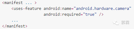 为了告知系统程序是基于相机的,需要在清单文件中添加 标签 :