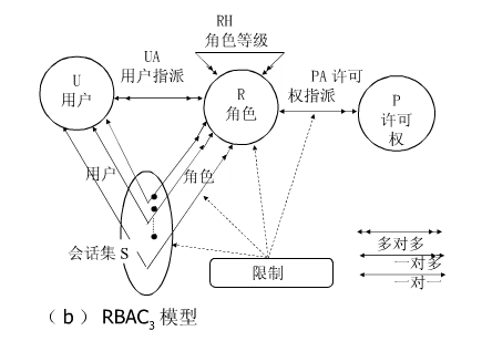 U、R、P、S分别表示用户集合、角色集合、许可权集合和会话集合。