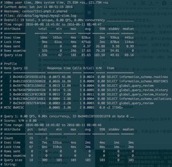 –review将分析结果保存到表中,这个分析只是对查询条件进行参数化,一个类型的查询一条记录,比较简单。当下次使用–review时,如果存在相同的语句分析,就不会记录到数据表中。