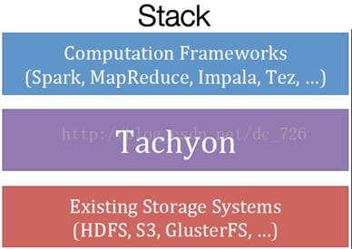 如上图所示, tachyon介于存储系统和计算框架之间, 缓存计算任务读写的文件, 目前Tachyon支持HDFS, S3和GlusterFS这几个后端文件系统。 引入Tachyon后, Spark/MapReduce任务程序不需要修改, 但是Spark、MapReduce框架自身要做一个200~300行代码的小Patch, 因为计算框架在产生输出之前, 必须先将数据lineage关系告知Tachyon, Tachyon记录lineage信息到磁盘, 用于实现数据的故障恢复。