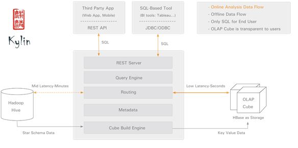 “Apache Kylin is an open source Distributed Analytics Engine from eBay Inc. that provides SQL interface and multi-dimensional analysis (OLAP) on Hadoop supporting extremely large datasets”。