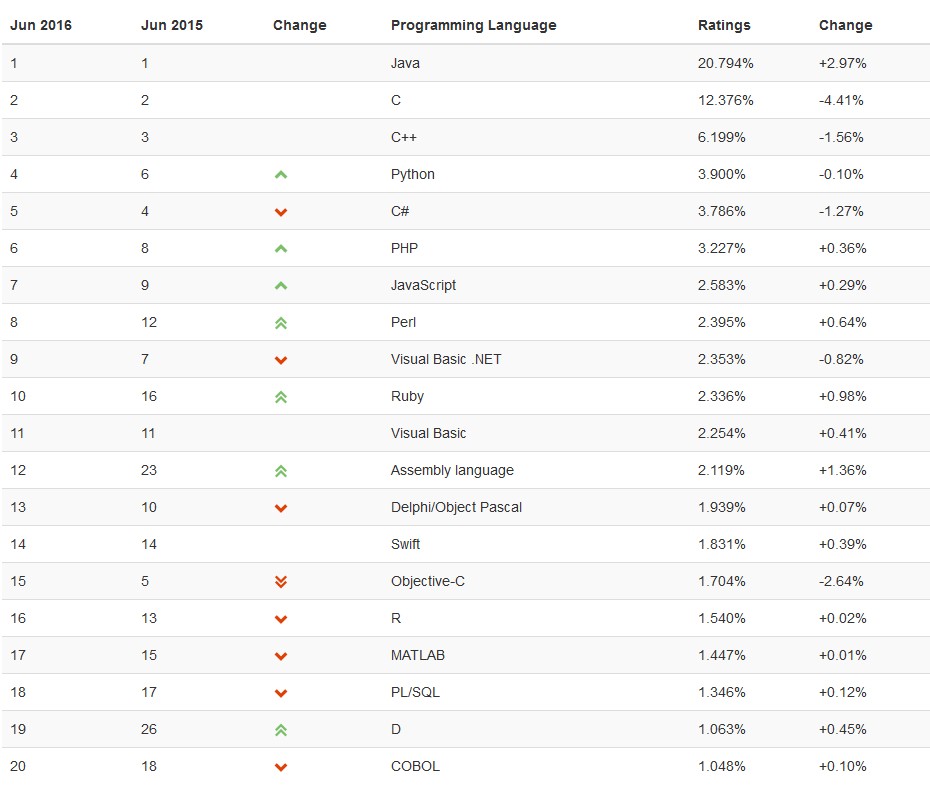 原文链接: TIOBE Index for June 2016 (文/孙薇 责编/钱曙光)