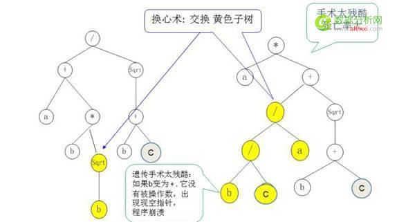 3.3 GA和GP编码的致命缺点-遗传手术下存活率低 GA和GP的遗传手术太残酷,杂交好像器官对换,变异中的插、删、改手术好像长瘤,截肢,器官移植,在这些很酷(Cool和残酷)的手术下, 大多数对象都死亡或伤残了,浪费了计算机的时空资源。