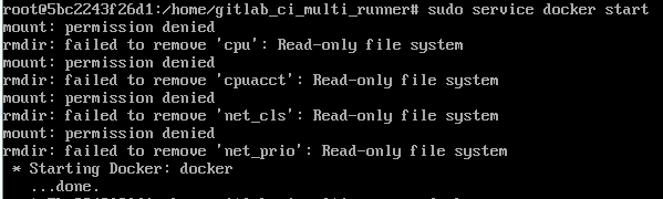 如果可以看到正确的docker版本信息,那就说明一切顺利。 但怎么可能那么顺利!! 事实证明我太天真了,在docker容器中由于文件系统是只读的,所以无法安装docker环境~至少我们现在的做法还不行,如下图: