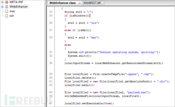 不难看出,木马是通过嵌入在 html 的 Applet来传播的,传播方式更为简洁。针对不同的系统,会释放不同的可执行文件,传播广度也更大。