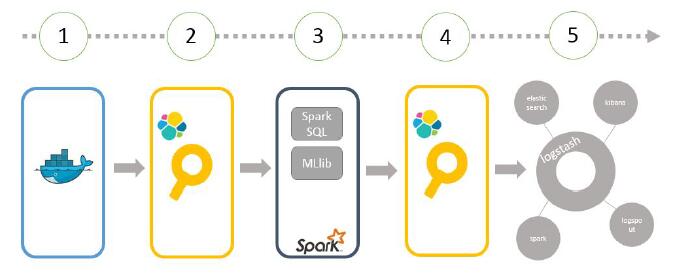 (4)>(5). 给出每个user推荐的docker repository,并且将结果保存到es,供展示模块调用读取。步骤(5)中,当一个用户pull了一个logstash的image,我们的推荐系统可能就会推荐elasticsearch, kibana,logstash, logspout, spark等image,因为用户pull过elasticsearch的image,也会pull其他相关的一些image,这些image常常被组合起来使用,所以推荐系统会给出这些推荐建议。