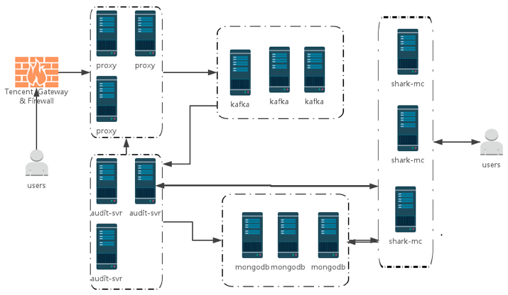 - 每个用户实例都有自己单独的proxy,在数据上传是不同实例消息并发上传到kafak的topic,保证每个用户信息及时进入审计消息队列。