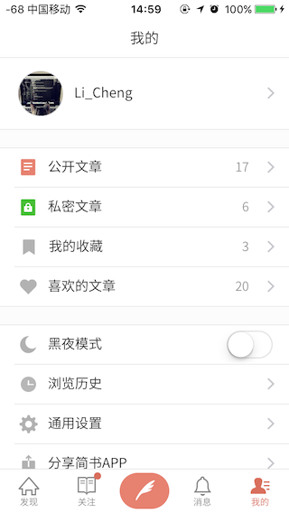 简书-我的界面